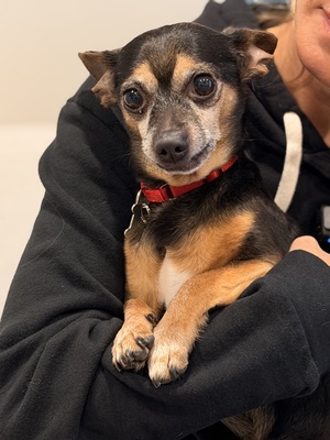 Chito Meet Chito This little love bug is a true lap dog and your constant shadow. Chito is about 7lbs and 8-10 years old. He’s happiest snuggled up on the couch or in bed (yes, he’s a bit of a bed hog!). Chito is calm, quiet, and settles nicely when left alone. He sleeps through the night, isn’t a big barker, and has a great appetite. He does best on a consistent potty schedule and may benefit from another dog to encourage him outside. Otherwise, he’d rather run back in and be with his person! Chito isn’t much into toys but may play a little with encouragement. He’s gentle, non-aggressive, and easy to love. Due to some mobility limitations, he can’t do stairs but manages the couch just fine. If you’re looking for a loyal, low-key companion who just wants to be by your side, Chito is your guy 🐾 Click here for Application |